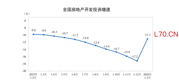 国家统计局:1—2月份,全国房地产开发投资9612亿元,同比下降11.1%