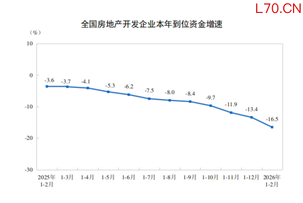 国家统计局:1—2月份,房地产开发企业到位资金同比下降16.5%